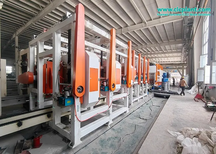 本项目为一条日产300立方的全自动轻质砌块生产线,集成搅拌、浇筑、切割、码垛等核心工序,采用三道竖切锯高精度切割技术,实现固废资源化利用与智能化生产,成为西北地区标杆性固废处置与绿色建材项目。